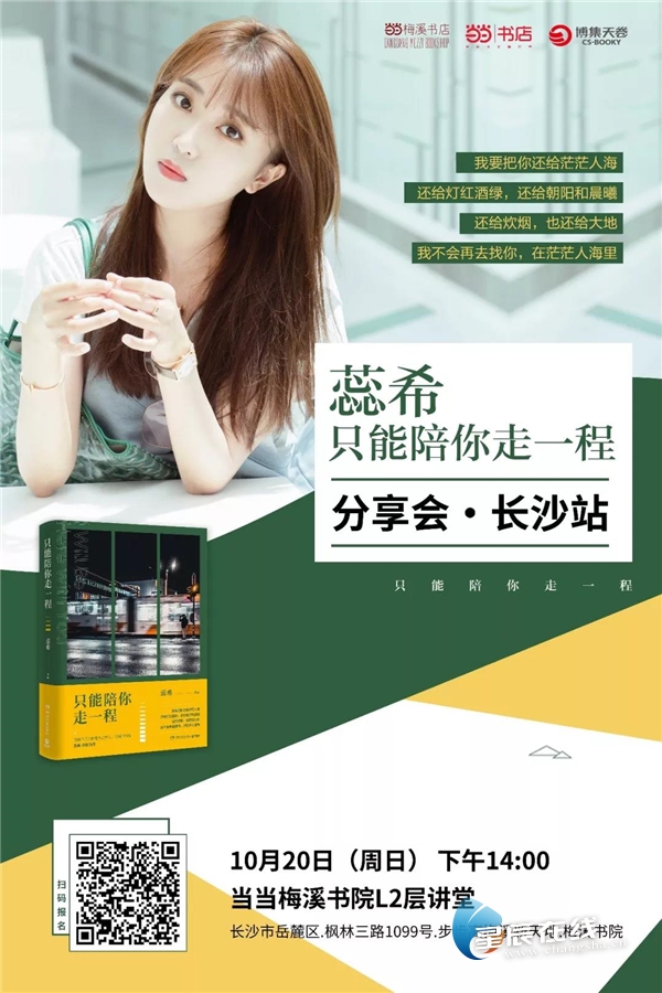 10月20日(周日)下午14:00,这位温暖过千万人的人气作者蕊希,将做客长沙当当梅溪书院,陪你共度一个美妙下午。