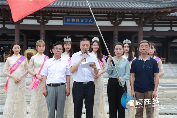荣誉会长王晓良,原省旅游局副巡视员王舜良分别讲话,对协会换届表达了良好的祝愿,提出很好的发展建议,并为世界旅游文化小姐“景区万里行”首站走进新华联铜官窑古镇进行了授旗。