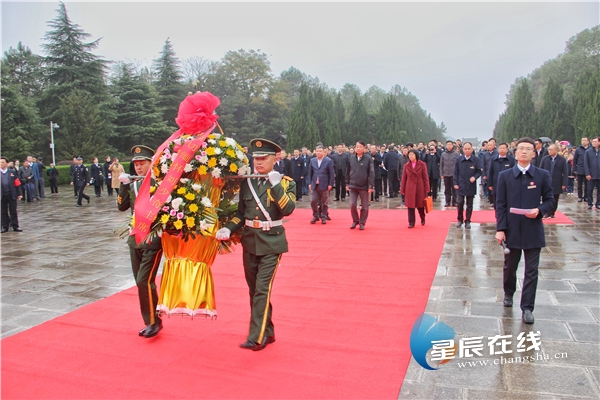 刘少奇之子、全国人大财政经济委员会副主任委员刘源,原中央文献研究室第二编研部副主任、研究员黄峥,原中央文献研究室第二编研部巡视员、研究员王双梅,湖南省文物局副局长江文辉,长沙市委常委、市委宣传部部长陈刚,宁乡经开区党工委书记、宁乡市委书记、湖南湘江新区管委会副主任于新凡,长沙市委副秘书长、刘少奇故里管理局党组书记刘晖,刘少奇故里管理局局长、刘少奇同志纪念馆馆长聂勇等全体班子成员,刘少奇同志亲属代表等社会各界代表和群众共400余人敬献花篮。