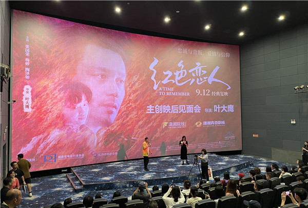 星辰在线9月4日讯(通讯员 曾静)由叶缨(叶大鹰)执导,张国荣、梅婷、陶泽如主演的经典电影《红色恋人》将于9月12日在全国艺联影院专线复映。9月3日,电影《红色恋人》全国路演·长沙站在潇湘院线旗下潇湘国际影城东塘店、MC影城山水湾店、CGV影城岳麓店、潇湘青春影城印象城店举行,导演叶大鹰与星城观众进行了面对面交流。活动由潇湘院线、北京聪聪文化传媒有限公司联合主办,湖南省电影行业协会、长沙市电影业协会特别支持。