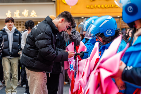 现场饿了么还举办了这一杯我请特别活动,联合众多奶茶品牌,宠爱全城女生。百名蓝骑士一改往日的骑手工装装扮,全城派发上千份甜蜜奶茶宠爱长沙妹陀,包括长沙交警、环卫工、外卖配送员等户外工作岗位上的女性,请她喝一杯甜蜜奶茶,给她们带来不一样的节日体验。