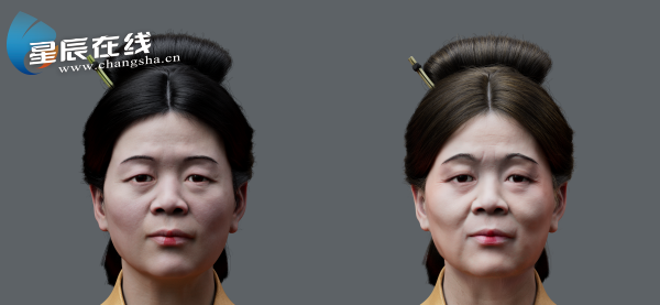 恰逢马王堆汉墓考古发掘50周年,湖南博物院于国际博物馆日当天,首次公开发布“辛追夫人”的3D数字人形象,分别为年龄约35岁的全身坐姿版和50岁左右的头部形象。它以上世纪70年代马王堆汉墓辛追夫人出土时的头部扫描X光片为主要依据,最大限度复原了其容貌。