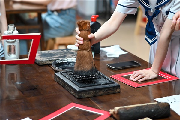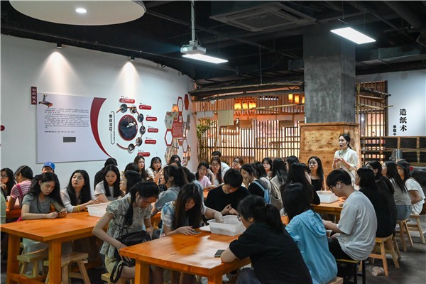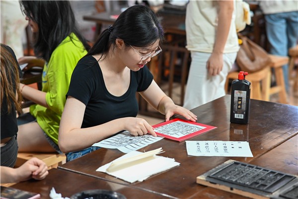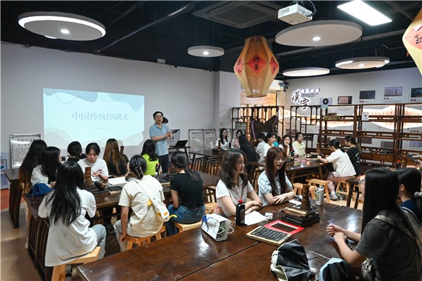 (同学们体验了中国传统印刷术课程。图片均由中南林业科技大学外国语学院提供)