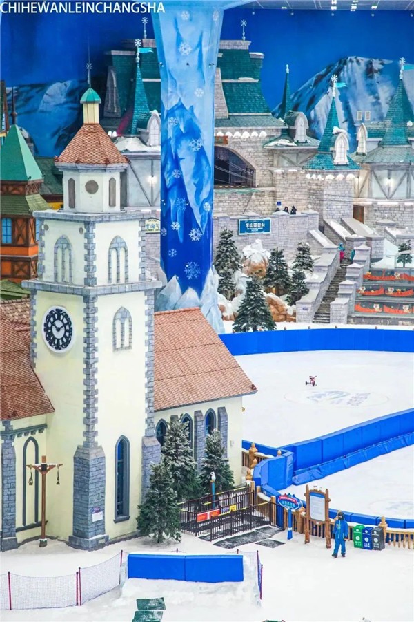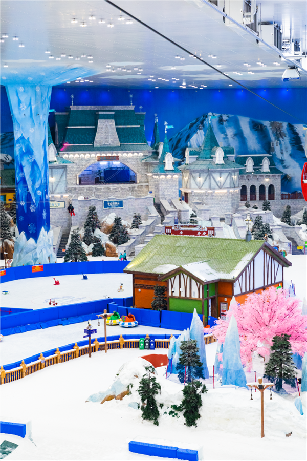雪域分为滑雪区和娱雪区,滑雪区造雪面积 10000㎡,有超宽面积雪道;娱雪区包括多条娱雪滑道、高空滑索、雪国缆车、冰湖碰碰车、冰上自行车、爱斯基摩屋、雪地转转等精彩项目。