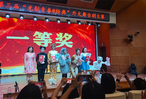 同学们选取喜爱的经典名著,用外文舞台剧场的形式还原经典,扮演书中的角色,表达他们的思想。最终,来自师大附中的剧目《猫》,以惊艳全场的表演、引人入胜的剧情、流利的英语口语表达获得本次比赛一等奖!来自雅礼中学的剧目《夜莺与玫瑰》以100199票,获得最佳人气奖。