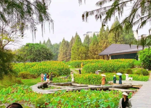 向日葵灿烂盛放,桂花飘香与彩叶初染,长沙秋景层次渐显。