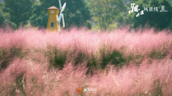 湖南中医药大学含浦校区的粉黛乱子草花田,也成为长沙秋季热门取景地。十几亩粉色花海在阳光下闪着柔光,远远望去宛若梦境。