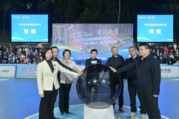 在热烈掌声中,湖南省体育局党组书记熊倪宣布赛事正式开幕。随后,与会领导共同启动全息球装置,伴随着动态视觉与光影交织,赛事Logo与主题口号在空中绽放,科技感十足,将现场氛围推向高潮。