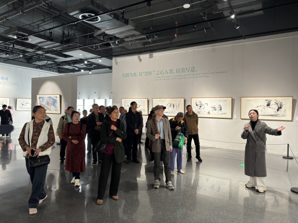 当日,离退休党员一行循着N+T艺术馆“自然+科技+人文”的核心脉络开展了深度调研:在蛮猫IP序厅,详细察看非遗艺术与湖南“霸蛮”精神的融合呈现;在鲁晓波院长水墨丹顶鹤展区,重点了解传统笔墨现代表达的创作理念与展示效果;于清水塘工业遗址摄影展前,驻足回望城市工业转型的历史印记;在汤洪波太空摄影展中,感受航天科技与艺术结合的独特魅力。