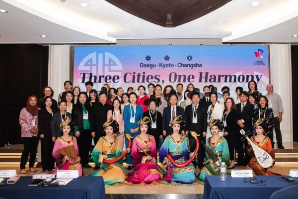 10月22日,2025年东亚文化之都国际研讨会在韩国大邱举办,长沙市代表团携精品文艺节目受邀参会。活动期间,长沙歌舞剧院的艺术家们带来两场精彩演出,通过极具湖湘特色的文化展演向国际友人展现长沙深厚文化底蕴,推动中日韩城市间文化交流与合作走向深入。作为世界“媒体艺术之都”与“东亚文化之都”,长沙以此活动为契机,进一步增进与大邱、京都的合作共识,以文化合作带动经贸合作,以城市交流推动区域发展,让友谊薪火相传、合作互惠共赢,共同谱写中日韩文化交流与友谊接力的新篇章。