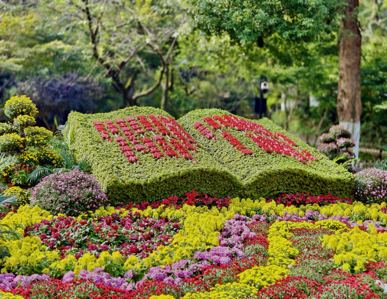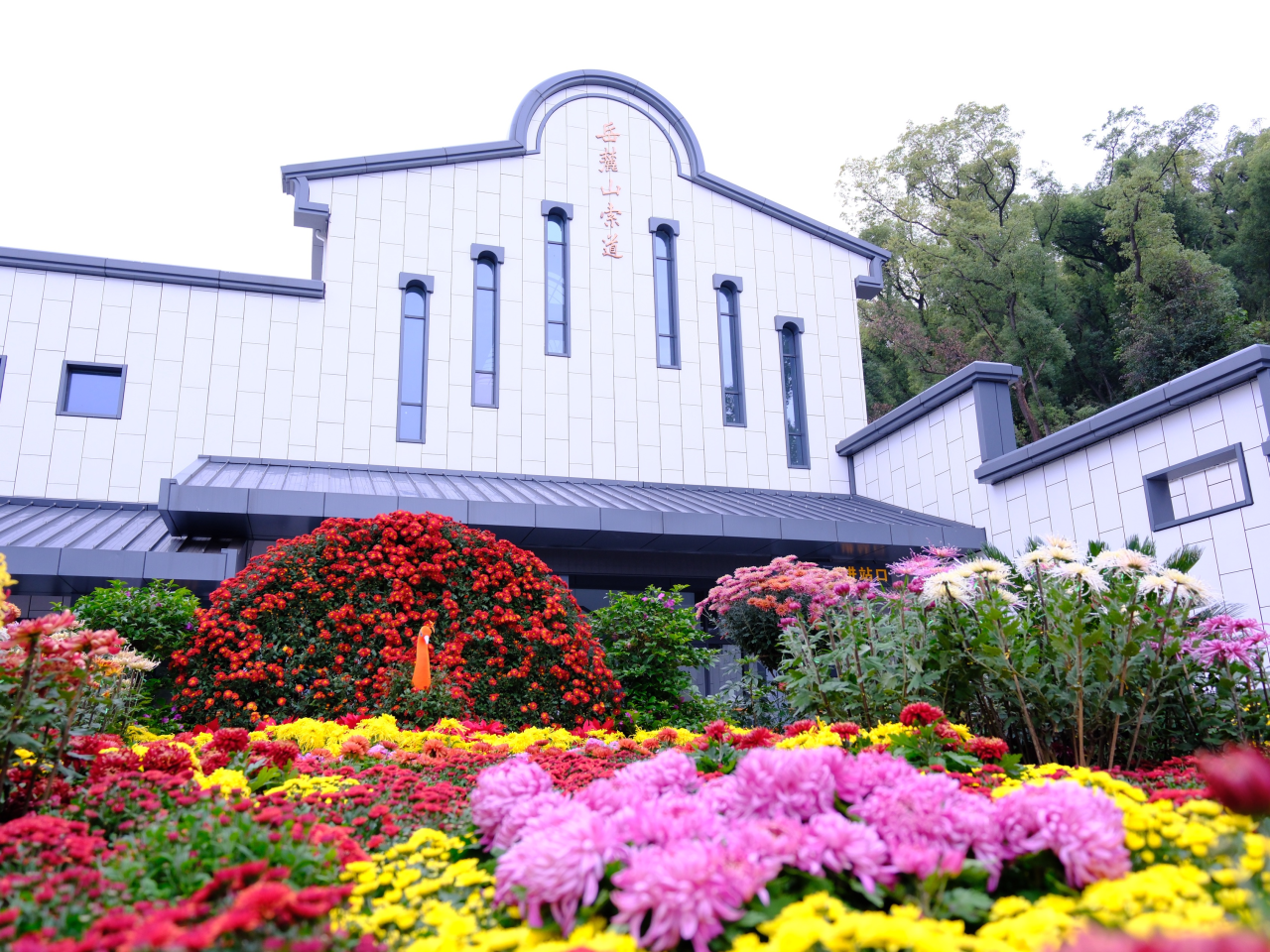 岳麓山的枫色未浓,菊景已漫然铺展。不是那种一色铺陈的绚烂,而是从山门到亭台,从石径到水畔,层层叠叠、深深浅浅地蔓延开来——有如徐徐展开的菊花长卷,以花为墨,题写千年。