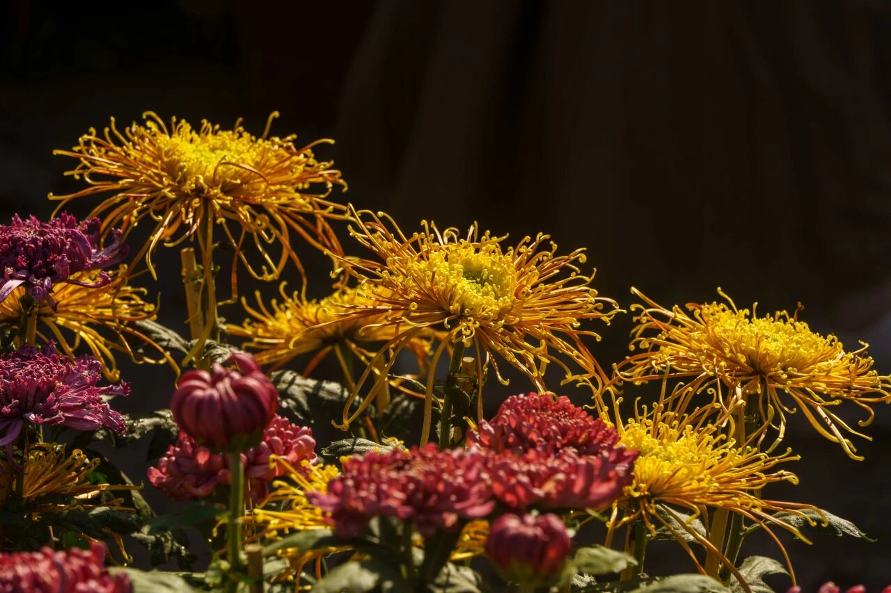 从唐时杜甫“丛菊两开他日泪”的羁愁,到宋人朱熹登麓讲学、咏菊言志的理趣,再到伟人毛泽东“战地黄花分外香”的豪情,岳麓山菊花始终与文心诗骨交织,与山魂水脉同息。而今,我们步入这场菊的叙事,走入“穿越时空”的文化手卷里。