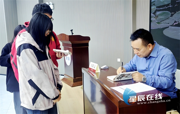 (王跃文给年轻读者签名留念。均为星辰全媒体记者 罗建勋/摄)