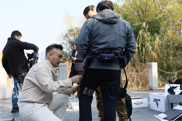 (“游龙”外骨骼机器人穿戴体验。优龙机器人 夏海逸/摄)