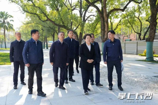 12月26日,省委常委、市委书记吴桂英调研督导湖南省博物馆和湖南烈士公园“馆园融合”推进工作,强调要加快推进项目建设,提升功能品质,以可感可及的实际成效回应群众所期所盼。市委副书记、代市长陈博彰参加。推动“馆园融合”,是省委、省政府着眼建设文化强省作出的重要安排。项目致力于探索打造“博物馆·公园”相结合的生态模式,让“馆”“园”在内外借景中,实现红色与绿色融合、历史与现代融合,打造文旅新地标。