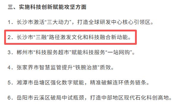 1.长沙市“三融”路径激发文化和科技融合新动能受表扬