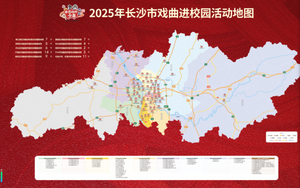 除舞台展演外,2025年长沙市戏曲进校园成果展与文化集市同步在校园里开放。成果展以“回顾・呈现・展望”为线索,通过“星火相传・遍染星城”“童心巧手・戏韵新生”“寄语未来・戏梦长青”三大板块,用活动地图、纪实照片墙、近500件学生非遗手工作品,全方位呈现活动历程与师生创意。“2025年长沙市戏曲进校园活动地图”直观呈现丰硕成果:足迹遍布长沙地区九大区县(市),走进68所校园及文化场馆,300余场主题活动及名师课堂,8万余名少年学子的深度参与,让戏曲雅韵、非遗技艺深入校园土壤,成为文化传承最动人的图景。