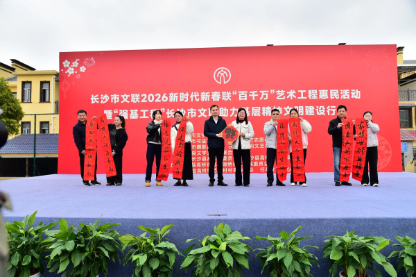 据悉,2026年新春期间,长沙市“百千万”艺术工程将组织千名以上文艺志愿者,深入百个乡村社区,书写并赠送数以万计的新春对联,让文艺之花在星城大地绽放。