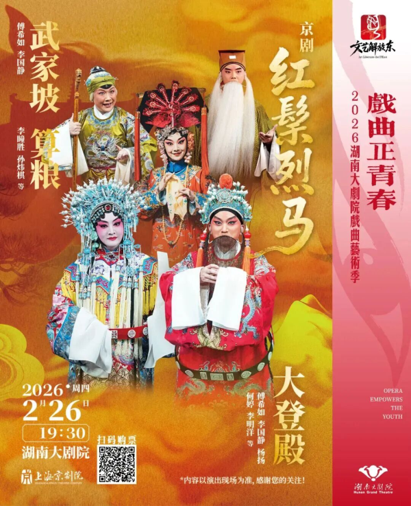 上海京剧院携《红鬃烈马》《凤还巢》两部经典南下,将于2026年2月26日、27日晚在湖南大剧院三楼大剧场连演两场。这是沪上京剧名团时隔多年再度来湘,以精湛阵容呈现百年老戏的不朽魅力。