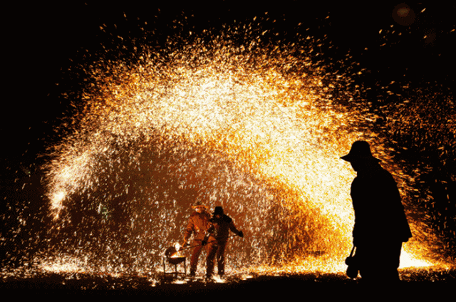 马踏祥云,龙腾九空、象王行、非遗打铁花、苗族篝火晚会多种节目轮番上映。