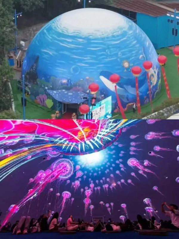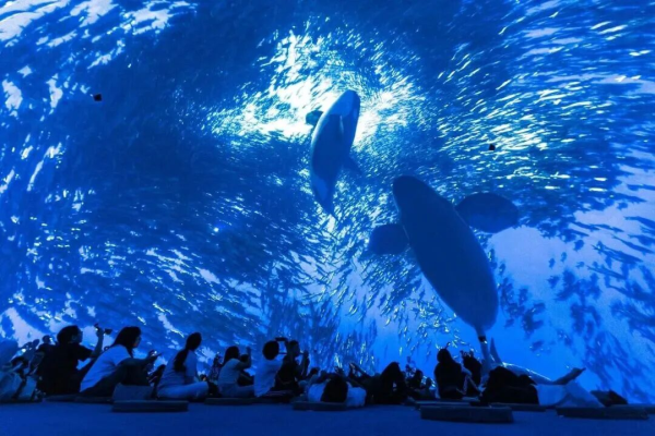 全国最大的球幕影院—奇幻海洋馆,360°全景画面,瞬间穿越至深海秘境,与海豚、鲸鱼等海洋动物并肩“遨游”,沉浸式感受海洋生灵的灵动与奇妙。