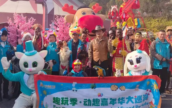 长沙动趣王国马年新春“动趣全家福”活动精彩纷呈,财神打卡迎好运,动物巡游嗨翻天,四大剧场全面升级,九大NPC互动有趣,探险会集章抽奖,六大迎宾秀跨国年味与传统氛围齐上阵。
