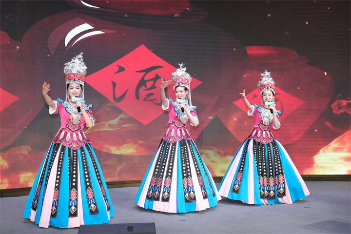 (推介会现场,摆手舞《土家酒歌》邀客。图片由主办方提供)