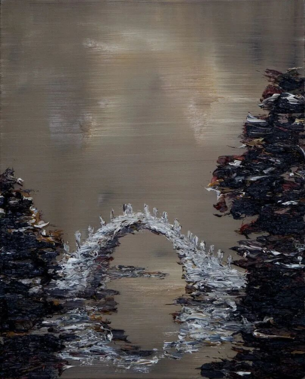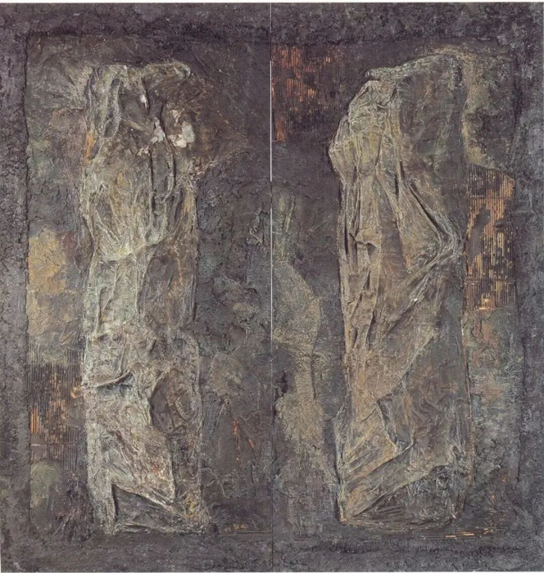 在他的创作中,这种“游”的状态更为显著。他喜用深沉的黑色与灰色为基底,画面常透出一种宏大的忧思,追问文明“生存与泯灭”的终极命题。“我以我的绘画追问洪荒宇宙的过去与未来,探究古老文化的生存与泯灭,在文化深度方面做出某些探索和努力。”