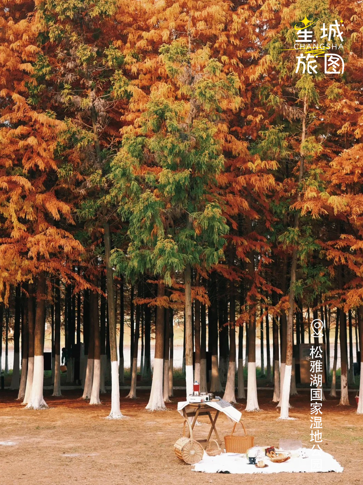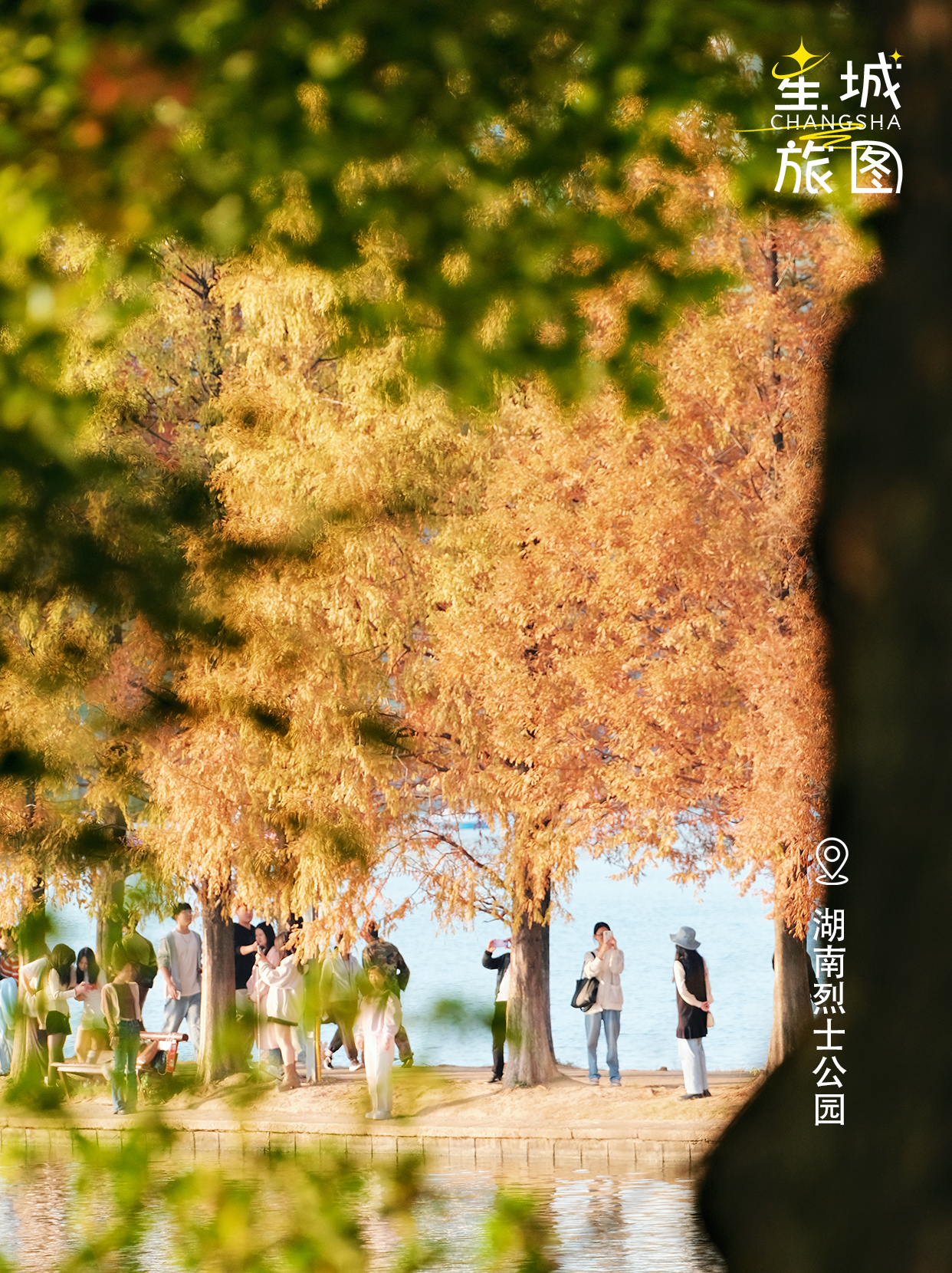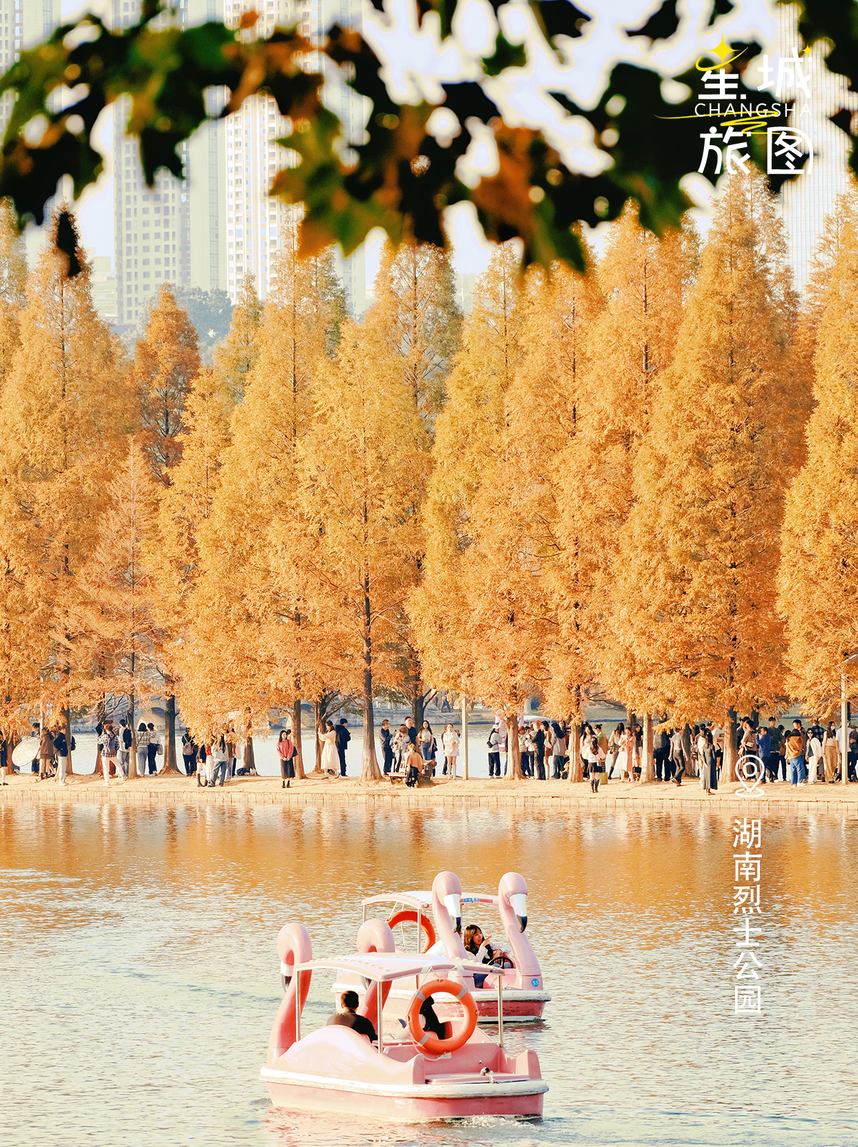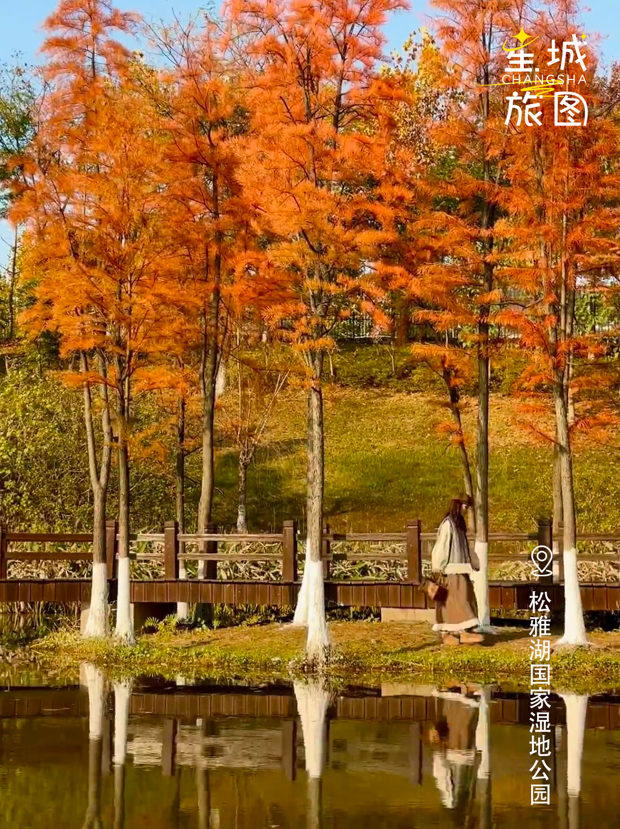 松雅湖、湖南烈士公园年嘉湖的水杉是静谧担当,成片红杉林环抱着湖面。沿湖漫步看水鸟掠枝、红叶映波,连空气都变得温柔治愈,时光也慢了起来。