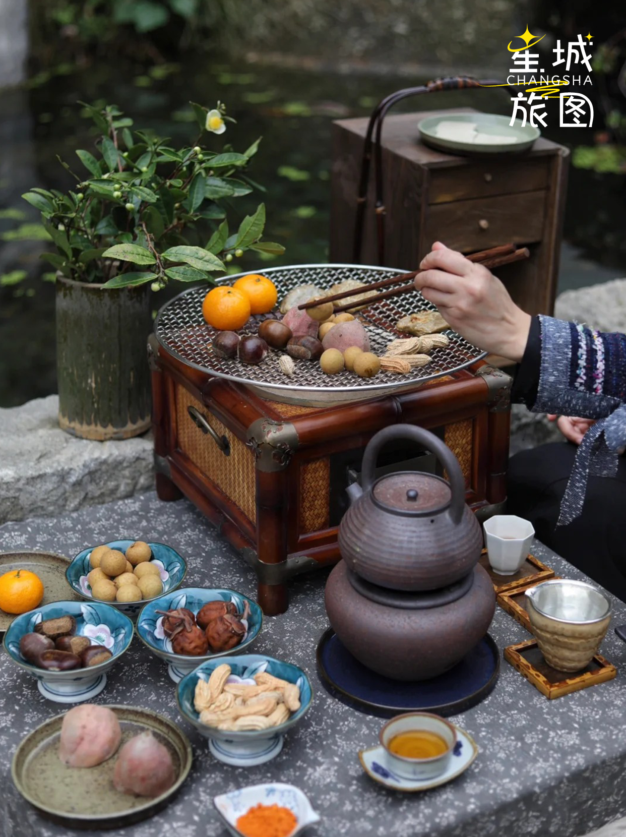橙黄蟹肥时,将蟹膏蟹肉填进挖空的鲜橙,以酒醋蒸制出满溢橙香蟹鲜的“蟹酿橙”,舀取时满是雅致;冬月天寒,就架起吊炉烤腊肉、蒸竹筒饭,油脂香气混着竹香漫过庭院,暖得人心都化了。
