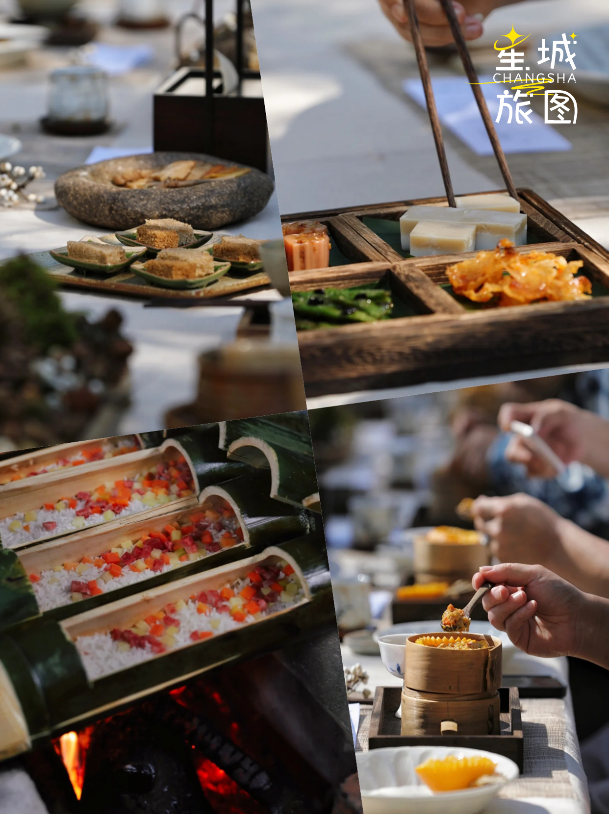 主理人苏安的“森林长桌宴”,是山居最动人的仪式感。她深谙“不时不食”的古训,把四季风物藏进餐盘,更复刻了《山家清供》里的宋韵美食——