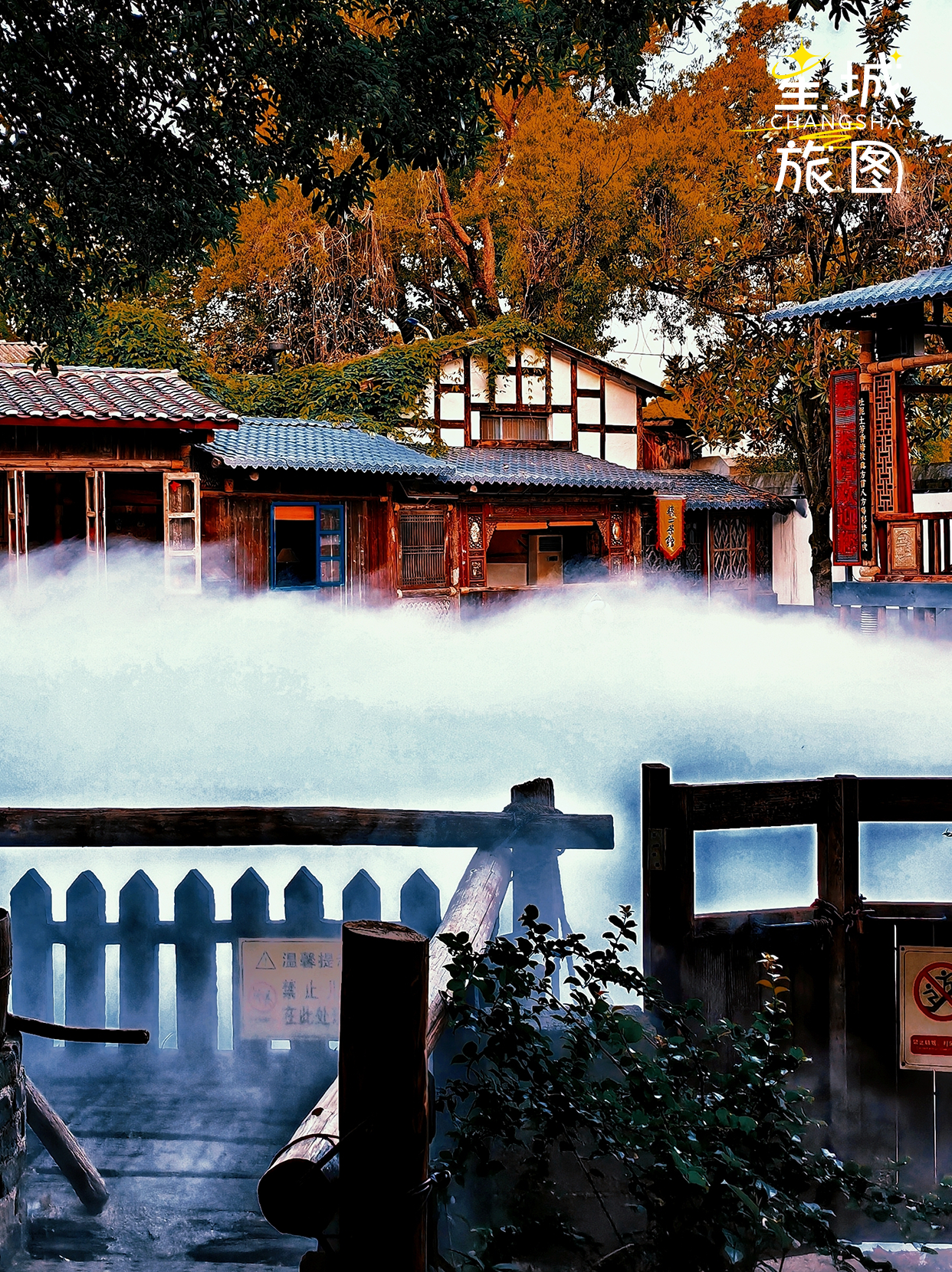 中式美学:青砖黛瓦映着临水戏台,老樟树枝桠探入院中,阳光洒在八仙桌的粗瓷茶碗上,连空气都飘着怀旧的味道。