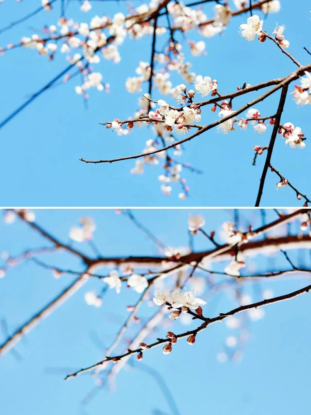 3.尝试“细节”叙事:除了满树繁花,可以特写挂着露珠的花蕊、含苞待放的花骨朵,或是落在苔藓上的花瓣,这些细节更能体现冬日梅花的神韵。