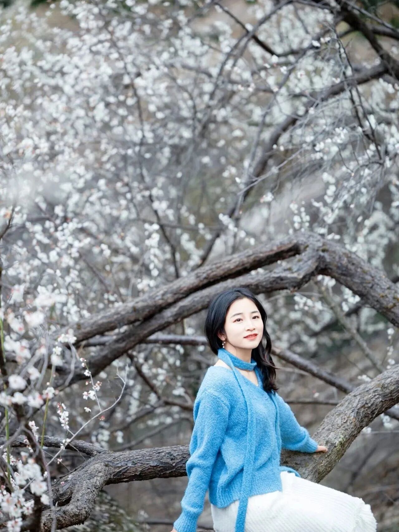 1.色系与材质:推荐低饱和度的莫兰迪色系,如雾霾蓝、燕麦色、米白色、浅灰紫,与梅花的清新气质绝配。衣物材质可选择羊绒、针织、毛呢,既有质感又保暖。