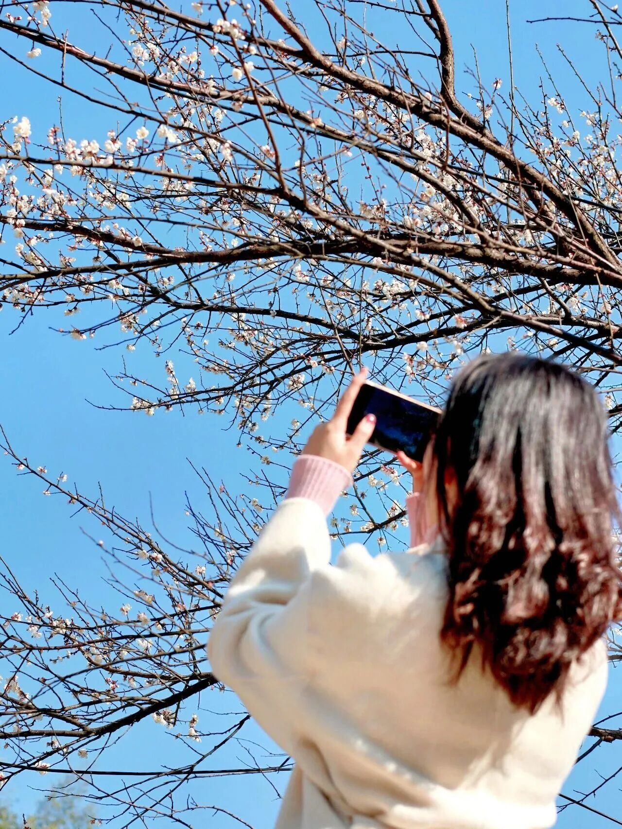 1.抓住“黄金光线”:冬季太阳角度低,下午3点到4点的斜射阳光非常柔和,能为梅花和人物镶上金边,氛围感直接拉满。