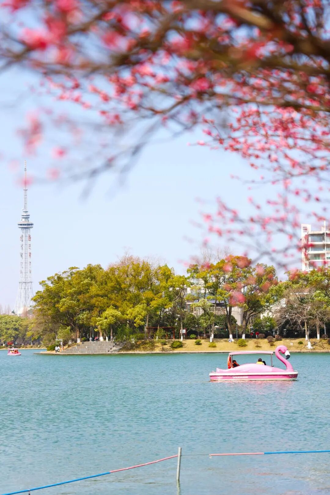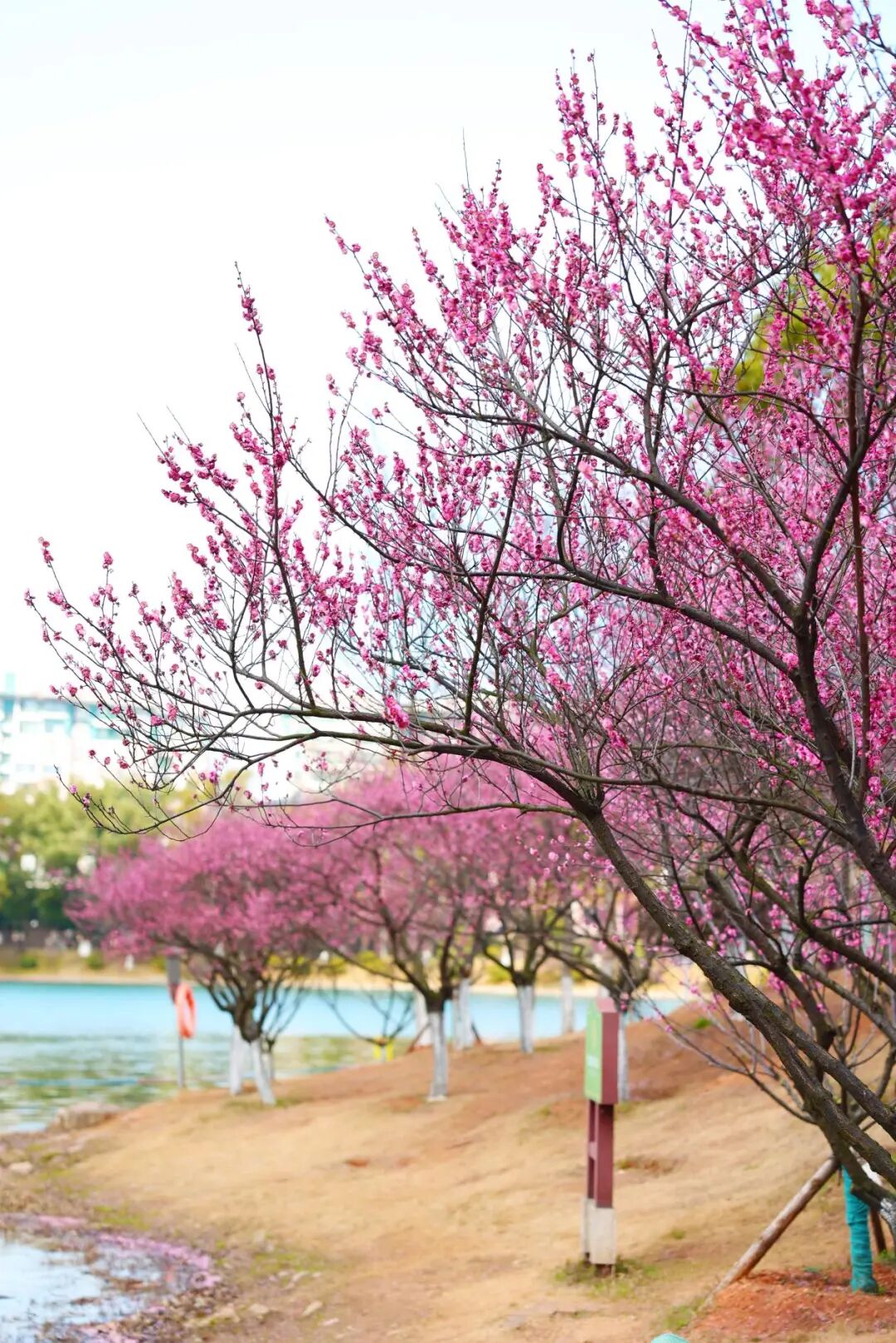 步入烈士公园,冬日的肃穆被一树树红梅温柔点亮;年嘉湖畔,红梅沿堤错落而开,灿烂了长沙的整个冬天。沿湖漫步,艳粉色的花瓣在阳光下泛着柔和光泽,有的已然盛放,有的半掩芳心,还有的苞蕾紧裹,静蓄春息;湖水澄澈如镜,倒映着满枝嫣红,花影相接,虚实成画,这是长沙冬日最动人的"梅"好瞬间。