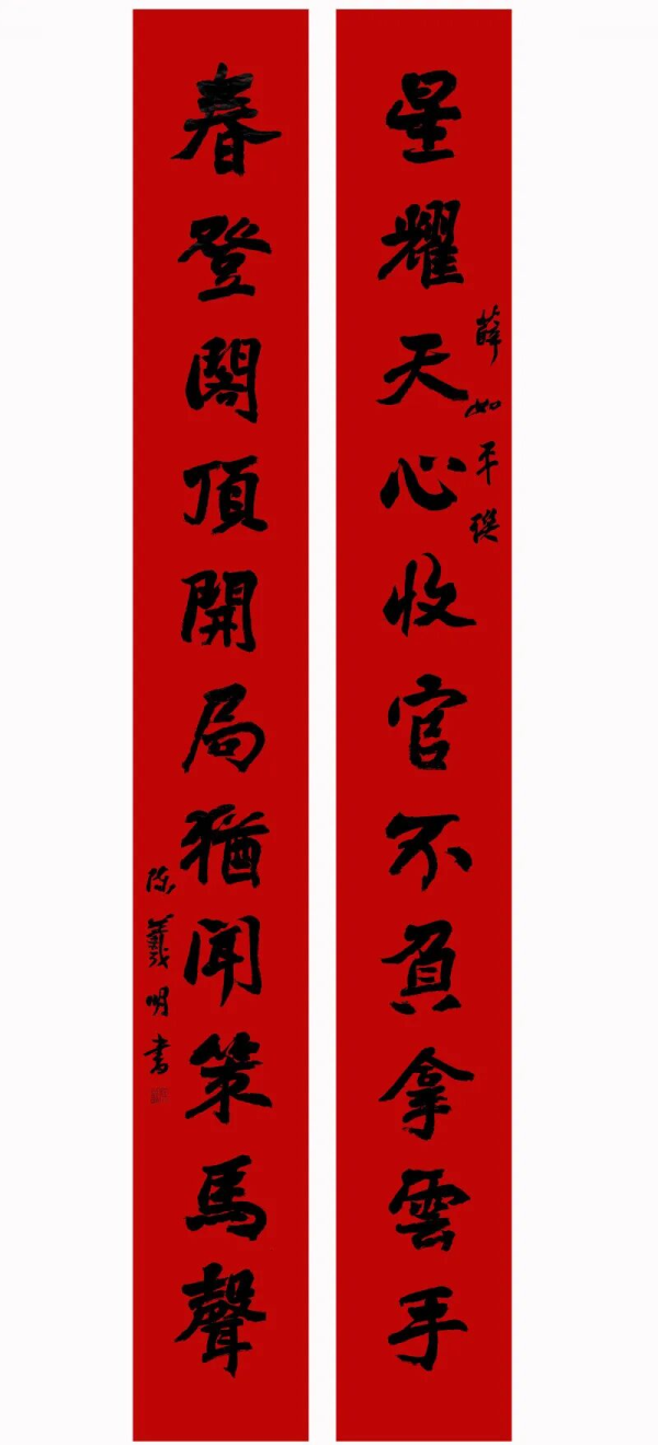 一是采用了嵌字、用典等艺术手法,直接点题,体现了对联切时、切地、精准表达的特点。上联以“星耀天心”破题,既指出长沙城的名称来源,也暗合天心阁“咸有一德,克享天心”之意,同时还营造了天心阁在星辰照耀下美丽宁静景致的美好氛围。“拿云手”化用李贺“古桧拿云臂”的典故,喻指新时代建设者的凌云壮志,“收官”一词更是蕴含“十四五”结束之年,长沙这个幸福、文明的城市在各项事业上取得的令人瞩目的成绩。下联中“开局”二字既指新春伊始,更喻指长沙在“十五五”开局之年在新征程中奋勇争先的豪情和决心。