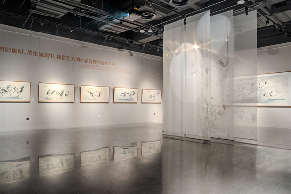 《融界:自然·科技·人文的再生共鸣》作为N+T艺术馆的开馆首展,正是这一理念的生动实践。展览通过艺术与科技的深度融合,构建了一个多维度、沉浸式的思想对话场。鲁晓波水墨艺术展作为首展主题展,以“澄怀味象——鲁晓波水墨丹顶鹤的生态诗心”为题,呈现鲁晓波对传统笔墨语言的当代表达,以及对自然生态、人文精神的持续观照;汤洪波太空摄影展聚焦航天员汤洪波从宇宙回望地球的视角,引发观众对技术文明、未来与家园的哲学反思;清水塘工业摄影展既是鲁晓波这位离乡多年的游子对故土的深情表达,也是其从艺术家视角对株洲工业遗产的影像记录;VR展厅呈现AI生成艺术、VR沉浸剧场与人机交互作品,聚焦科技如何拓展艺术的创作语言与感知维度。各展区既相对独立,又彼此呼应,共同构建出一幅自然、科技与人文深度对话的未来图景,充分诠释“融界”这一核心主题。