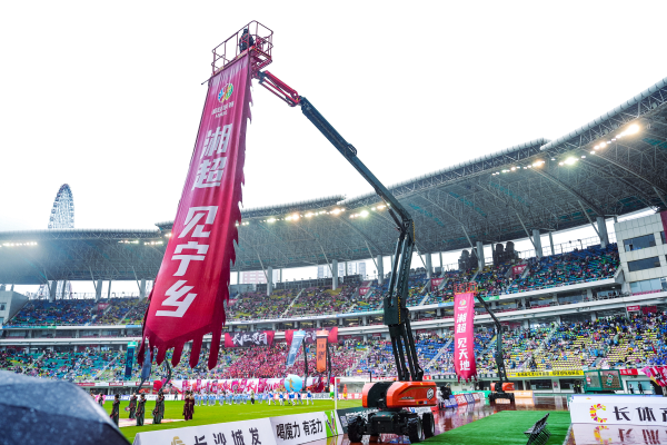 星辰在线11月10日讯(通讯员 李帅 喻金宇)四台钢铁巨臂巍然擎起十六米天幕,“湘超见天地、见自己、见未来、见宁乡”十六字在暮色中迎风展开。这不仅是赛前暖场的视觉盛宴,更是湖湘精神与现代科技的完美交融。在宁乡的绿茵场上,一场跨越三千年的文明对话正徐徐拉开序幕。