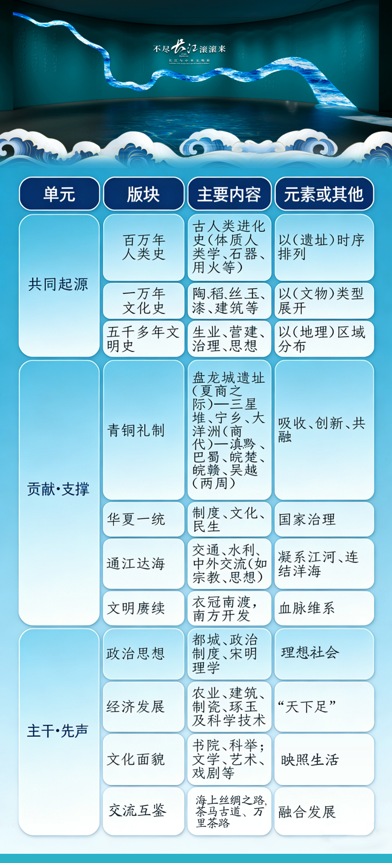 (“不尽长江滚滚来——长江与中华文明展”结构)