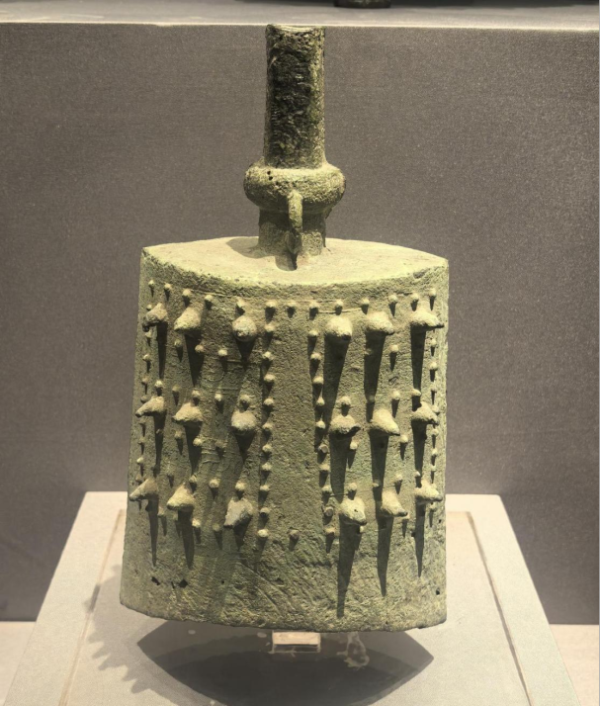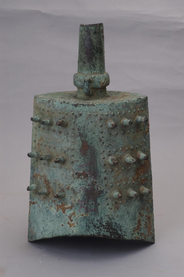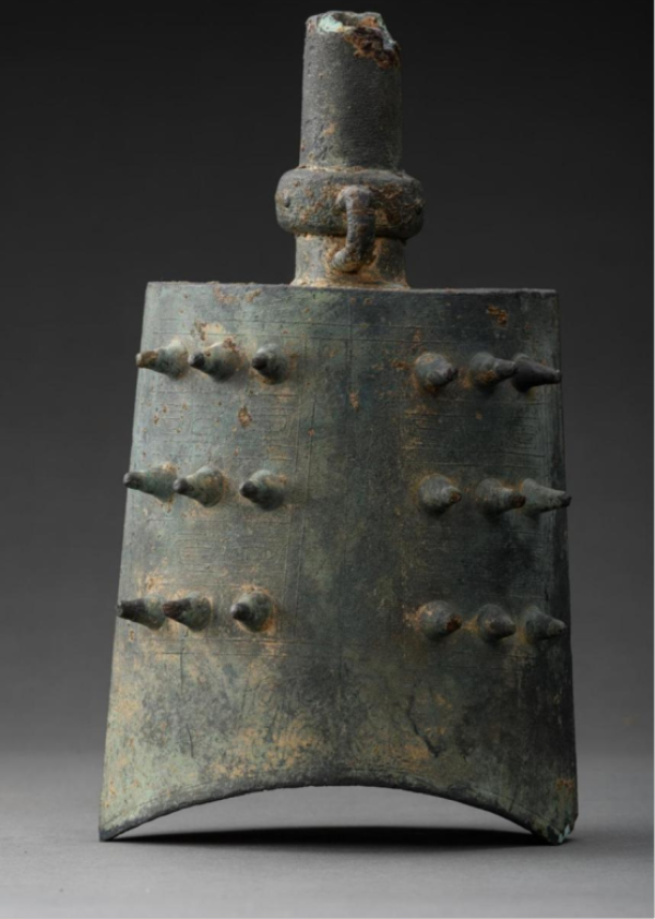 打击乐器。合瓦状,旋部呈圆鼓状,上无乳钉而饰细线云纹。钟身两面均铸有乳钉,三枚一组,共十二组,细乳钉隔栏呈连珠状排列。