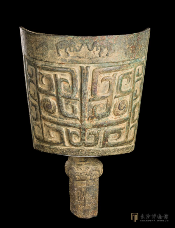 体型极大,为目前我国出土的商周青铜乐器中最大最重的一件。具有强烈的地方文化特征,与国博所藏象纹铜铙在纹饰上基本一致。
