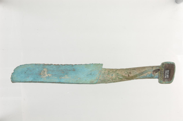 (商龙纹方形环首铜刀。长沙博物馆供图)